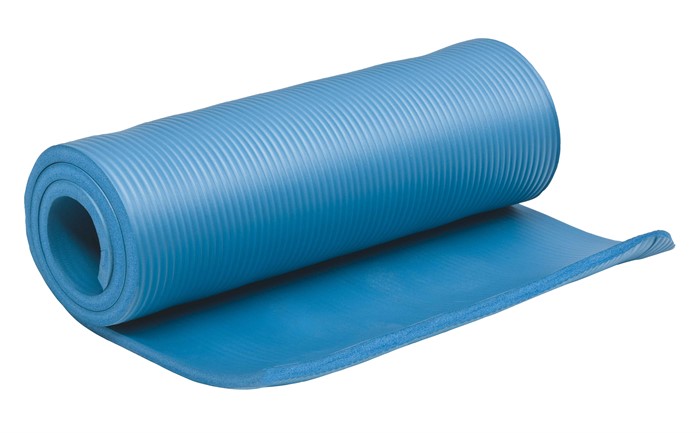 Kraftig träningsmatta med gummiband som håller ihop mattan